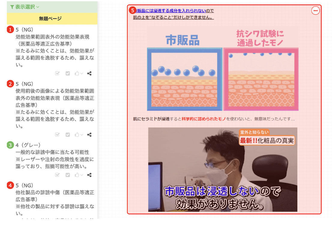 広告表現を一つ一つチェックし、問題点をわかりやすく指摘します。