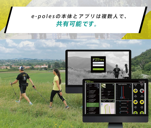 【e-poles】はイタリアの大手アウトドア・ウインタースポーツメーカーが開発、ノルディックウォークで使うポールに各種センサーやICチップを内蔵し、スマホと連動させて動きを分析することで正しい姿勢や歩行が身に付き、より効率的な体力づくりができるトレーニンググッズです。