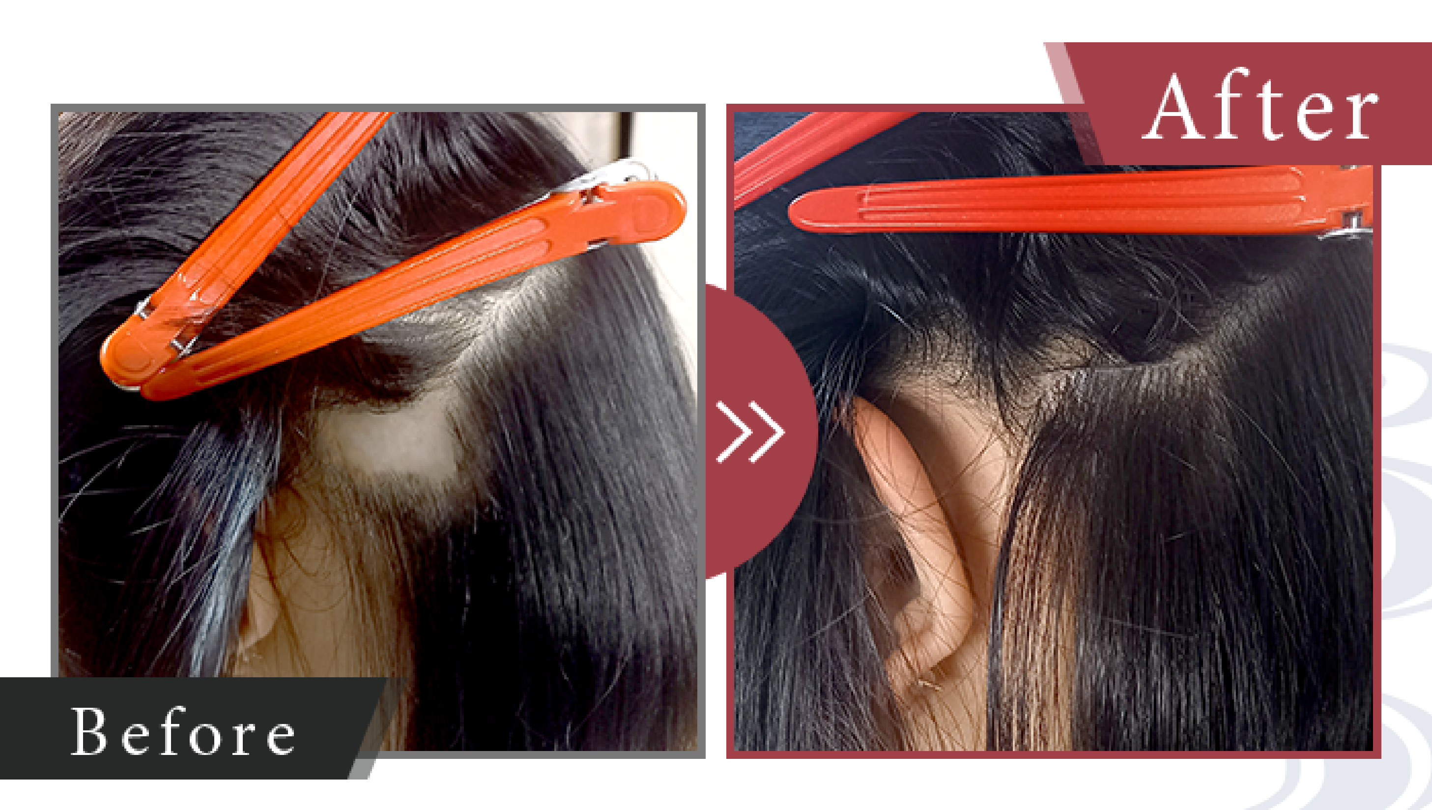 ご自宅で簡単に円形脱毛部位の形やサイズ、ヘアスタイルに合わせて調整が可能です。また、通っているヘアサロンなどで美容師さんにスタイルをセットしてもらうこともおすすめです。わざわざ、ウィッグ専門店などに通う必要がありません。