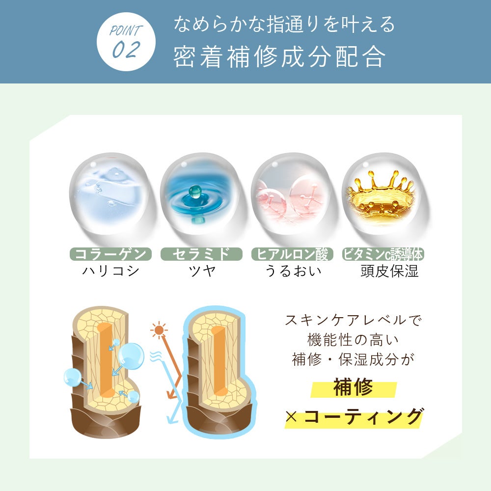 \密着補修成分配合/ なめらかな指通りを叶えます