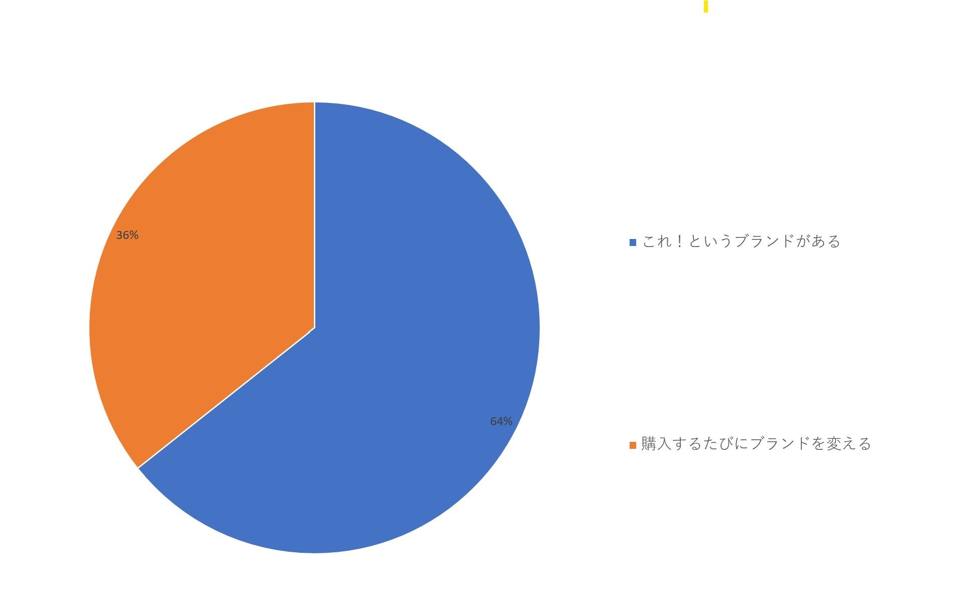 「購入するブランドについて、あなたの考えに近いのはどちらですか?」という質問では、「これ!というブランドがある」という回答が64パーセント、「購入するたびにブランドを変える」の回答が36パーセントという結果になりました。