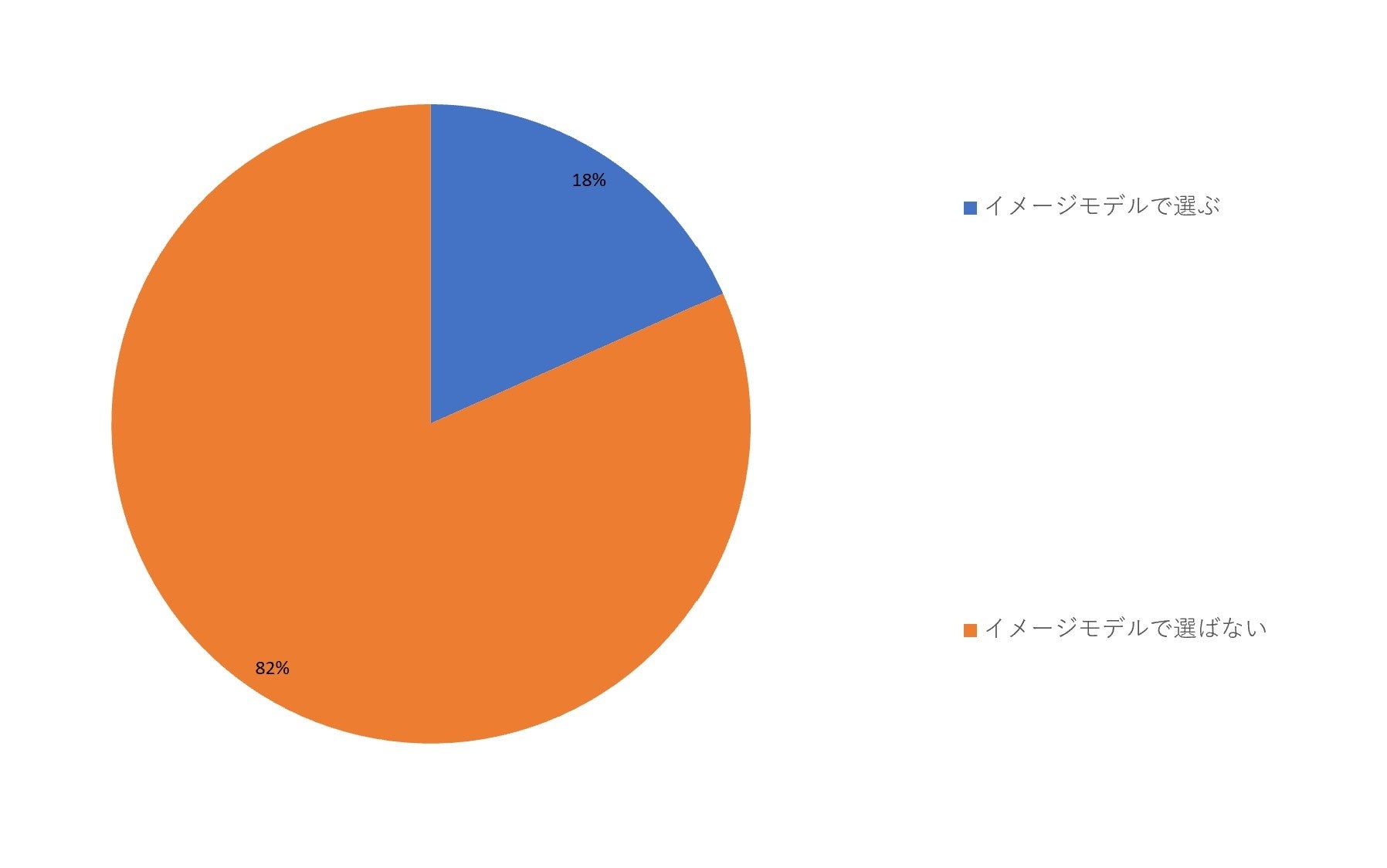 「カラコンを『誰がイメージモデルをしているか』で選びますか?」という質問では、「イメージモデルで選ぶ」という回答が18パーセント、「イメージモデルでは選ばない」の回答が82パーセントという結果になりました。