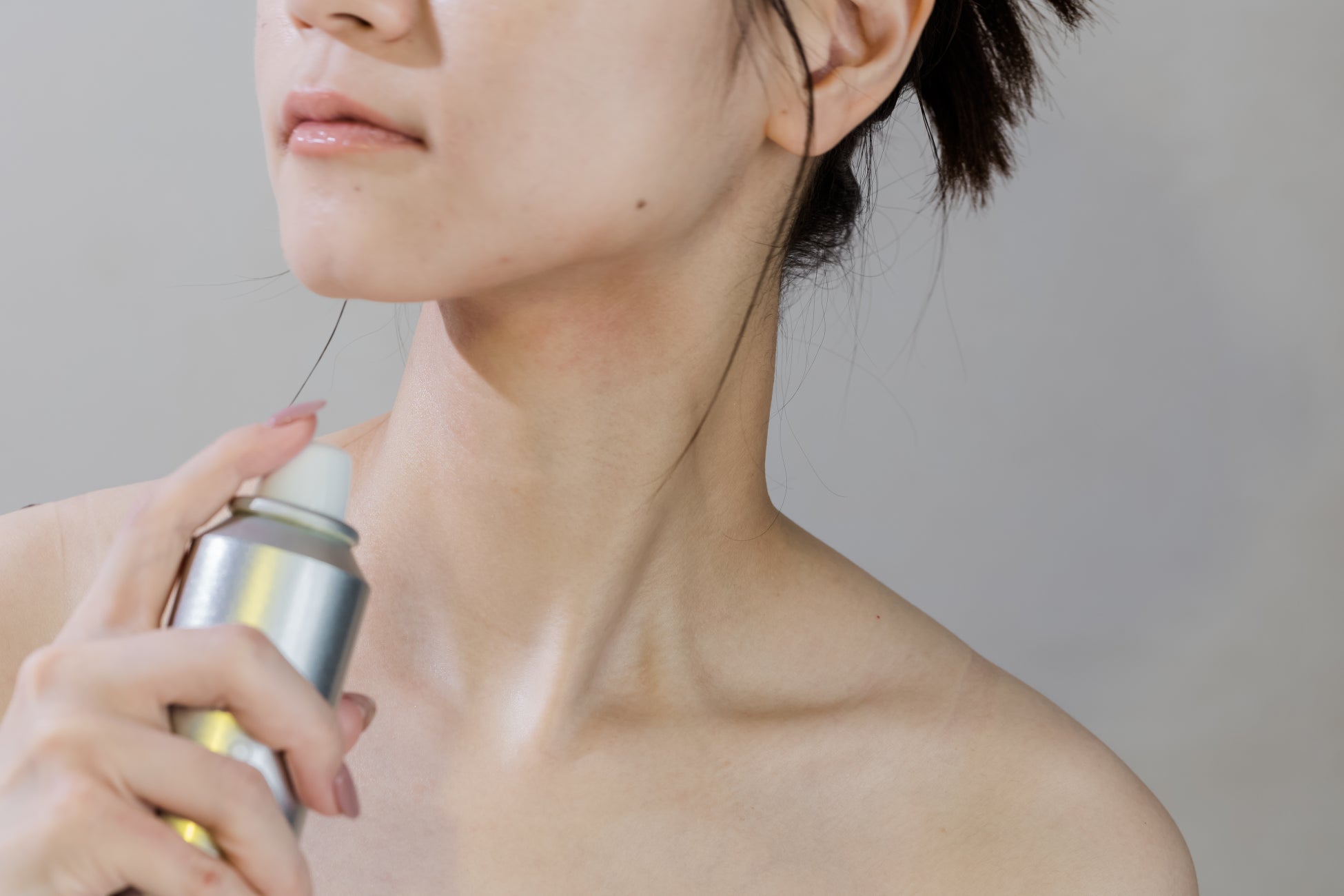 容器を軽く振り、お肌から15cmほど離して円を描くようにスプレーしてください。