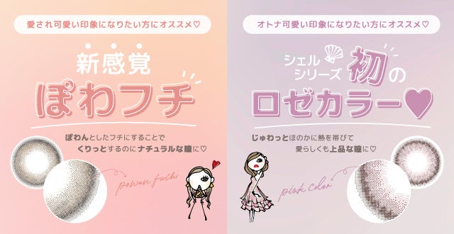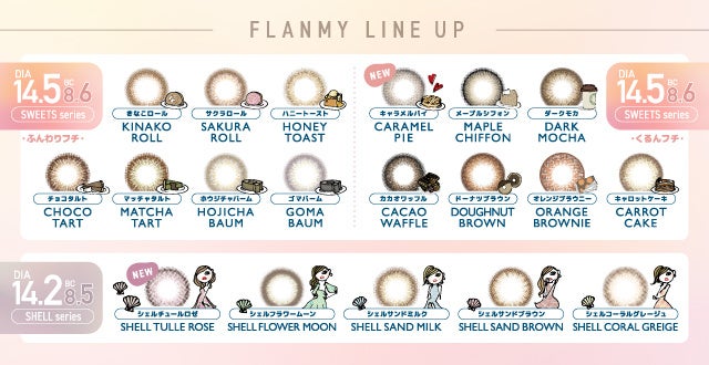 くりっとおおきめDIA14.5mmのスイーツシリーズ、ふわっとちいさめDIA14.2mmのシェルシリーズにそれぞれ1色が追加になりました。