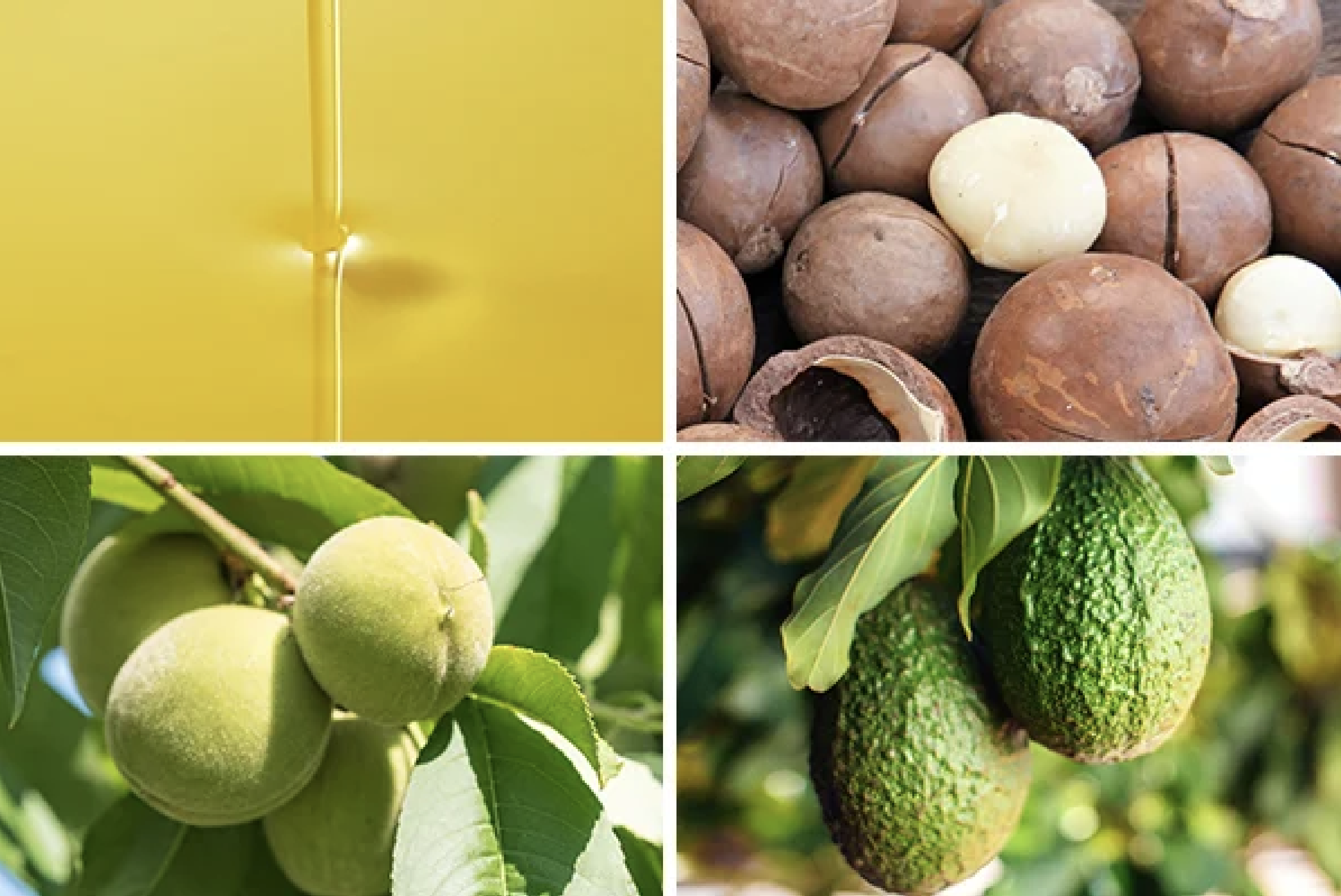 皮脂によく似た組成をもつ贅沢な植物オイル4種「植物性スクワラン、マカデミア種子油、モモ核油、アボカド油*」を配合。肌が受け入れやすく、ベタつかずにさらっと消えるようになじみます。