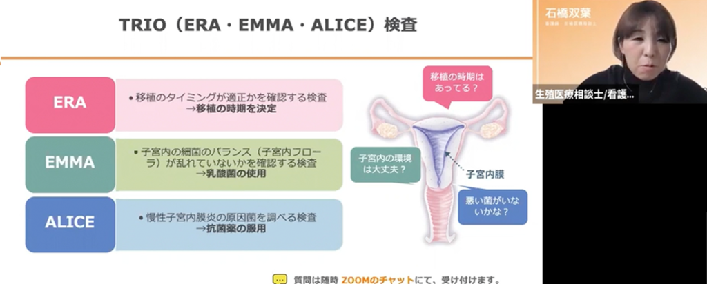 本セミナーは、昨年・一昨年と好評を博したセミナーの第3弾となります。これまでも不妊治療領域の検査会社であるアイジェノミクス・ジャパンの代表取締役の西山 隆太郎さんをお迎えして、様々な質問についてお話ししていただいています。ERA検査、EMMA/ALICE検査に関して知りたい事が満載のセミナーです。検査を検討している方だけでなく、妊活がこれからという方や遺伝子検査自体を初めて聞いたという方にも数多く参加いただいています。