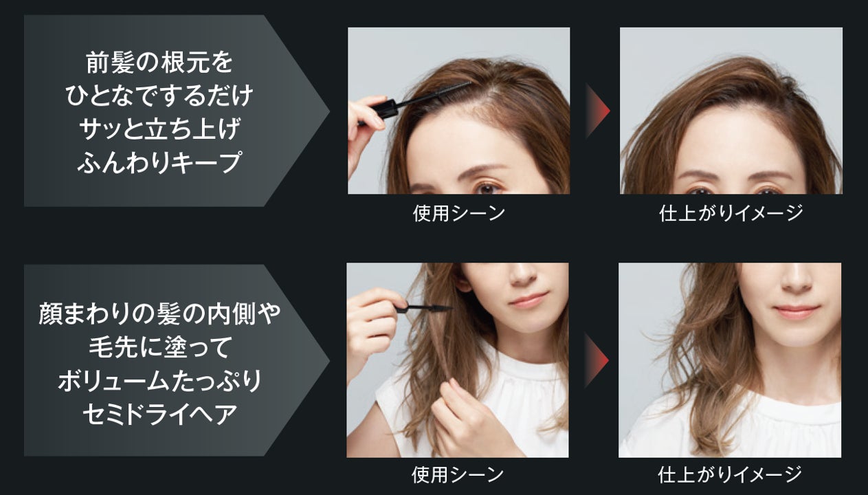 ●ふんわり&軽やか立体感キープ:湿気やくずれからスタイルを守る セットポリマー配合(ポリシリコーンー9)