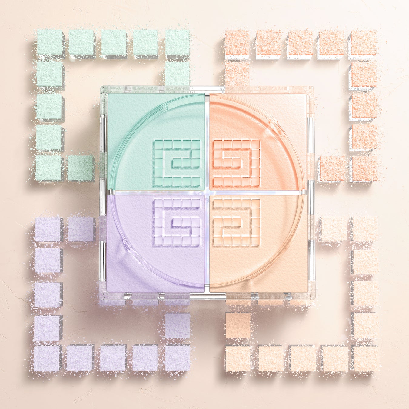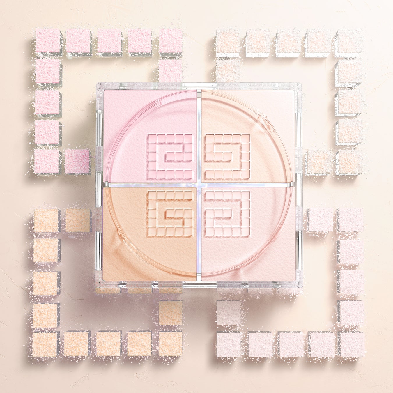 自然界にある光の魔法、「プリズム」を再現するように、完璧なまでに計算しつくされた4色のハーモニーが美しい仕上がりを叶えます。光を受けるとしっとりとした光沢をもたらし、くすみや毛穴を自然にぼかします。ジバンシイ独自のアトマイズ・テクノロジーによる微粒子パウダーの優れた密着力、繊細な質感で、崩れ知らずの美しさへ。