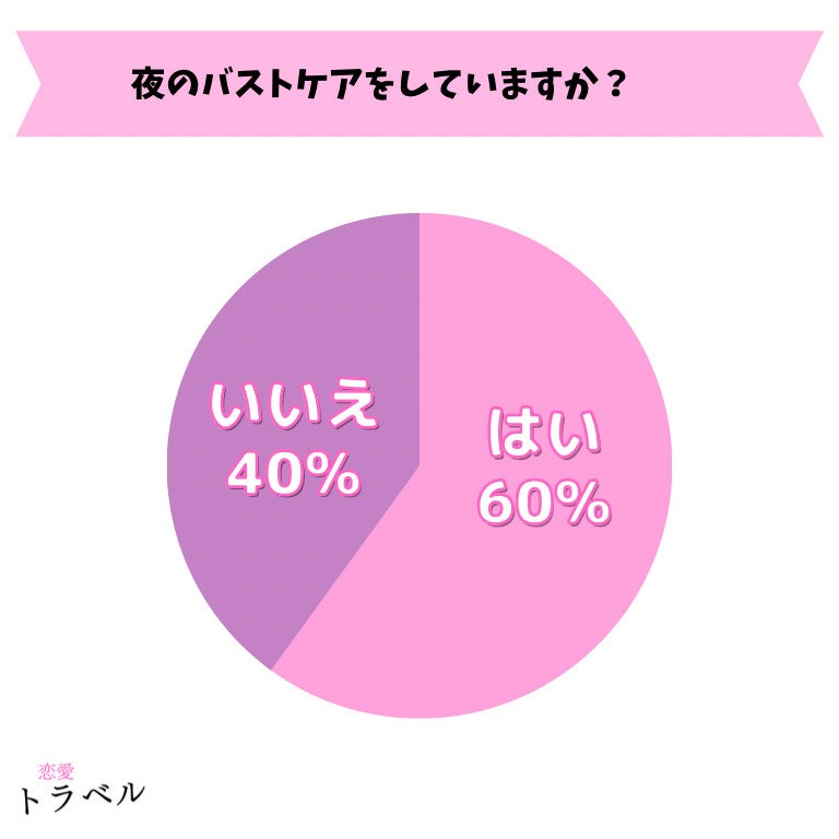 夜のバストケアをしている女性は、6割の方がいるということがわかりました。