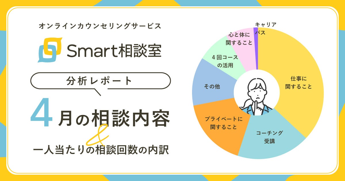 相談内容で一番多かったのは、3月同様に「仕事に関すること」でした。「Smart相談室」は、社内の方に相談しにくいことを相談できる特性があります。本来、仕事に関することであれば、同僚や上司など、社内で対応するのが一般的ですが、社内の評価に影響を及ぼしたり、特定の誰かについて話すことを考慮されているといった状況を垣間見ることができます。