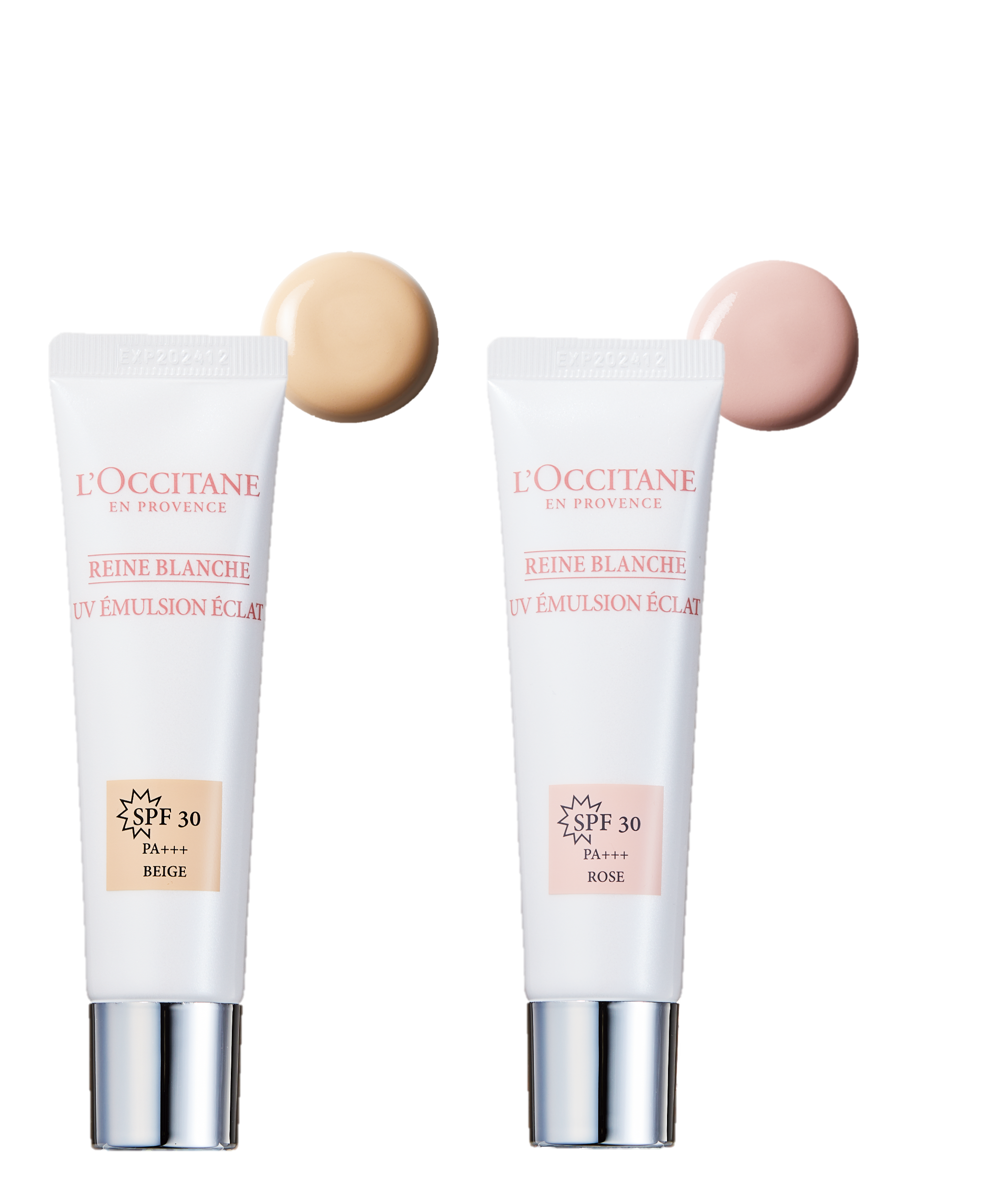 光を浴びれば浴びるほど純白に輝く、南仏プロヴァンスの神秘の花「レーヌデプレ」の力をスキンケアに応用したロクシタンのブライトニングシリーズ「レーヌブランシュ」。このシリーズから初となる、化粧下地・UV対策・ブルーライト対策・乳液の役割を1本でできるアイテムが新登場。肌の透明感を脅かす紫外線、ブルーライト、乾燥からしっかり肌を守りながら、自然に素肌を美しく演出します。透け感と肌色補正どちらも叶える絶妙なカラー設計で、化粧下地としてはもちろん、オフの日はこれ1本で仕上げることも可能です。さらに純白花「レーヌデプレ」の力で、透明感と肌あれケアも同時に可能。使うほど美しい肌へ導きます。毎日のメイク前はもちろん、忙しい日の時短ケアにも。様々なシーンにこれ1本で対応できます。
