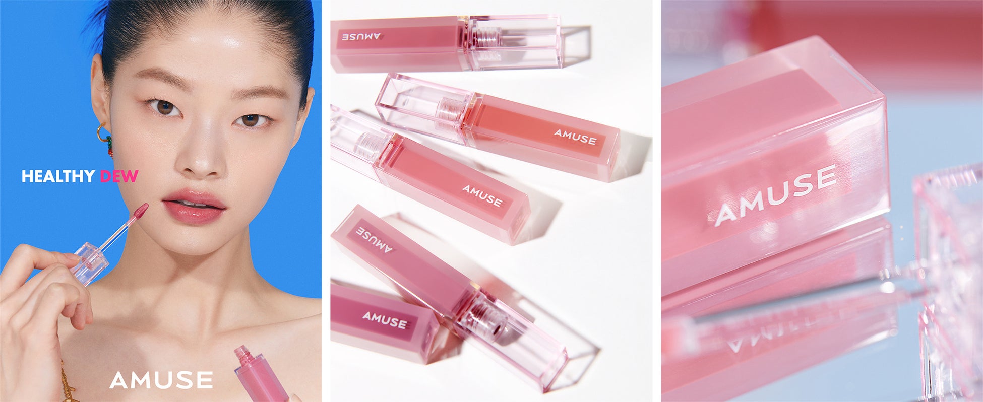 ヘルシーデューコレクションは、より澄んだ発色で透明に輝くナチュラルヘルシートーンの高水分水感ツヤが長続きし、本来の健康な唇のカラーにデューテクスチャーが軽くしっかり密着。透き通るカラーが鮮やかに持続するロングラスティングで、しっとり爽やかな水感ツヤコーティング仕上げでべたつきと色移りを抑えました。AMUSEならではのアイコニックなクリアパッケージデザインは、テクスチャーからパッケージまで製品の製造工程全般を厳しく検証するフランスのイヴヴィーガン認証を取得し、敏感な唇にも安心してお使いいただけます。