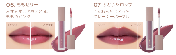 別のリップや haomii のリップ同士を重ねて使用するのもおすすめ。自分だけの組み合わせを見 つけて、リップメイクを楽しむことができます。