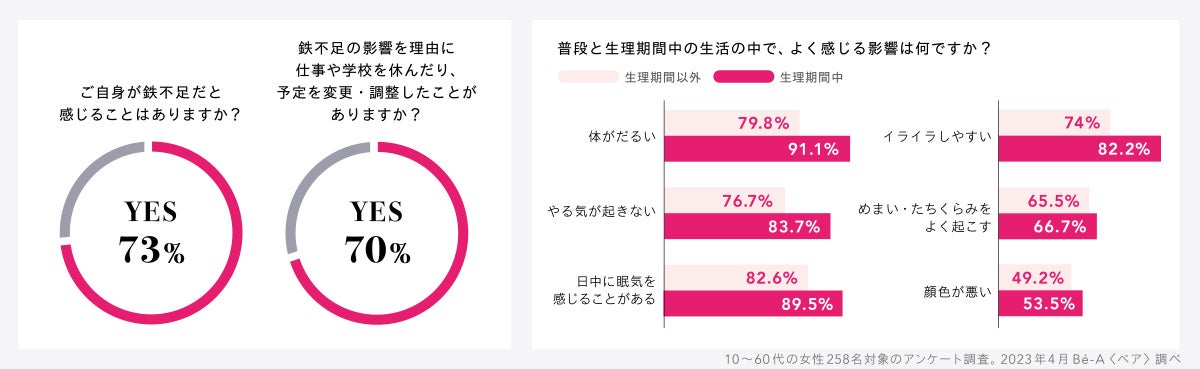 そう願うBe-A〈ベア〉が次に着目したのは、初潮を迎えてから月経によって多くの鉄分を失う女性たちの「鉄不足」問題です。朝のだるさや体の重さ、息切れやふらつき….気がつかないうちに鉄不足による不調が日常になっている女性たちが「頑張れないのは自分のせい?」と諦めることない毎日を。