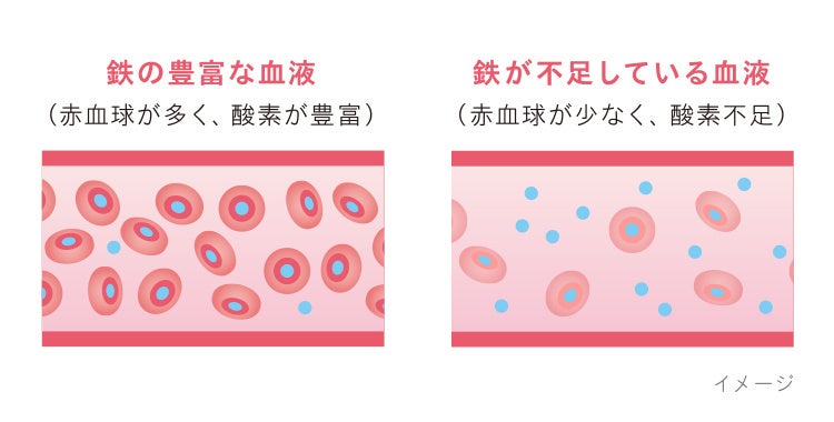 赤血球は全身に酸素を運ぶ役割を担っているので、鉄が足りない状態=体内が酸欠の状態。すると、頭がぼーっとして思考力が落ちたり、少しの動きでめまいや息切れを起こしたり。