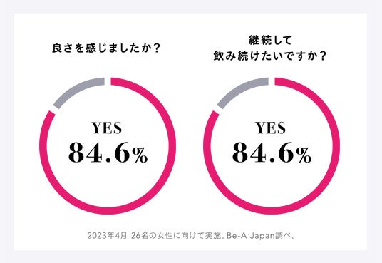 また、ベア ザ・サプリメント Feを飲んで、「良さを感じた、飲み続けたい」と回答した人は、84.6%に上りました。
