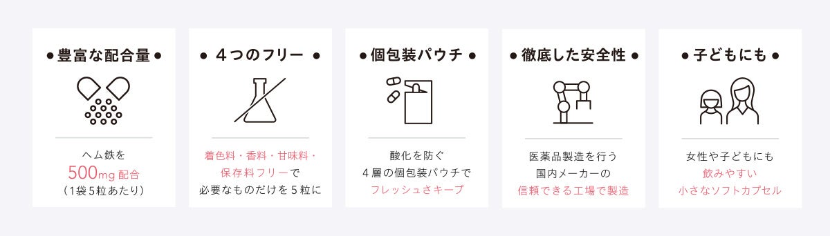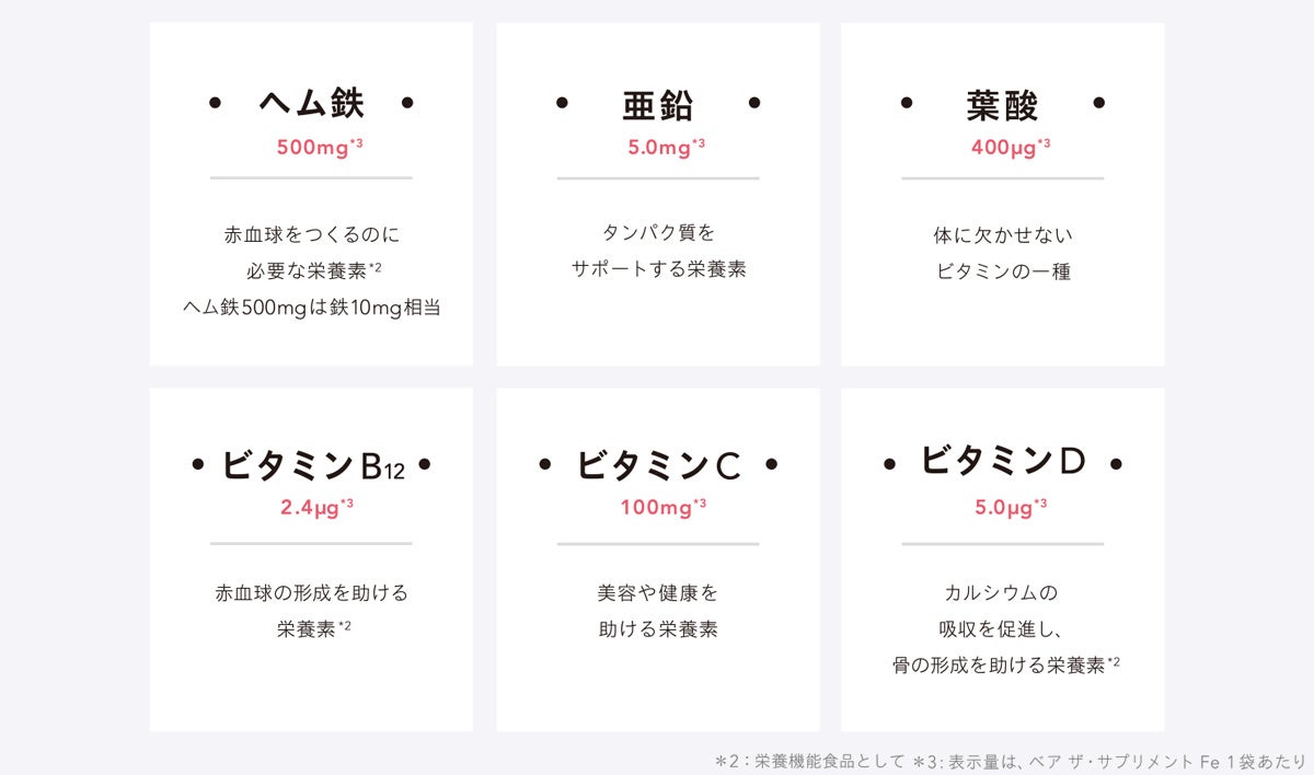 [ヘム鉄][亜鉛][葉酸][ビタミン3種]