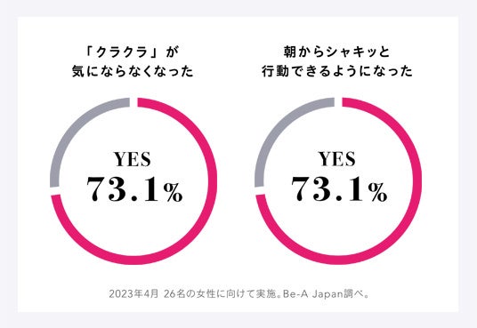 「朝からシャキッと行動できるようになった、クラクラが気にならなくなった」と回答した人は73.1%。鉄不足による、様々な不調にお役立ていただいていることが伺えます。