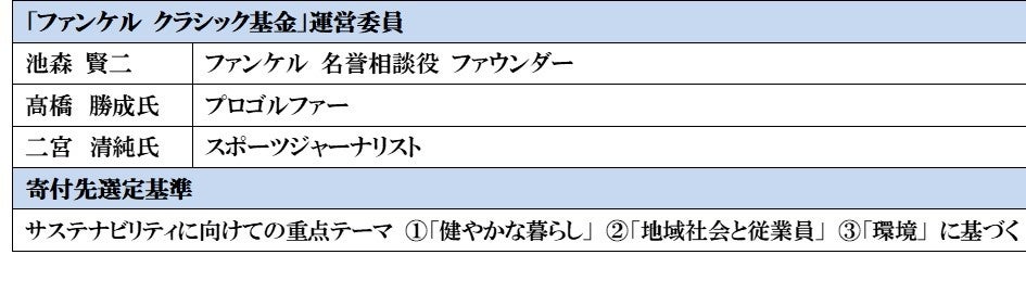 今年も、さまざまなチャリティ活動を通じた「ファンケル クラシック基金」と、従業員が任意で加入する「もっと何かできるはず基金」から、「裾野市」「特定非営利活動法人 国際連合世界食糧計画WFP協会」へ寄付を行う予定です。寄付先は、当社のサステナビリティ活動の重点取り組みテーマである「健やかな暮らし」「地域社会と従業員」および「環境」に基づき、選定しています。