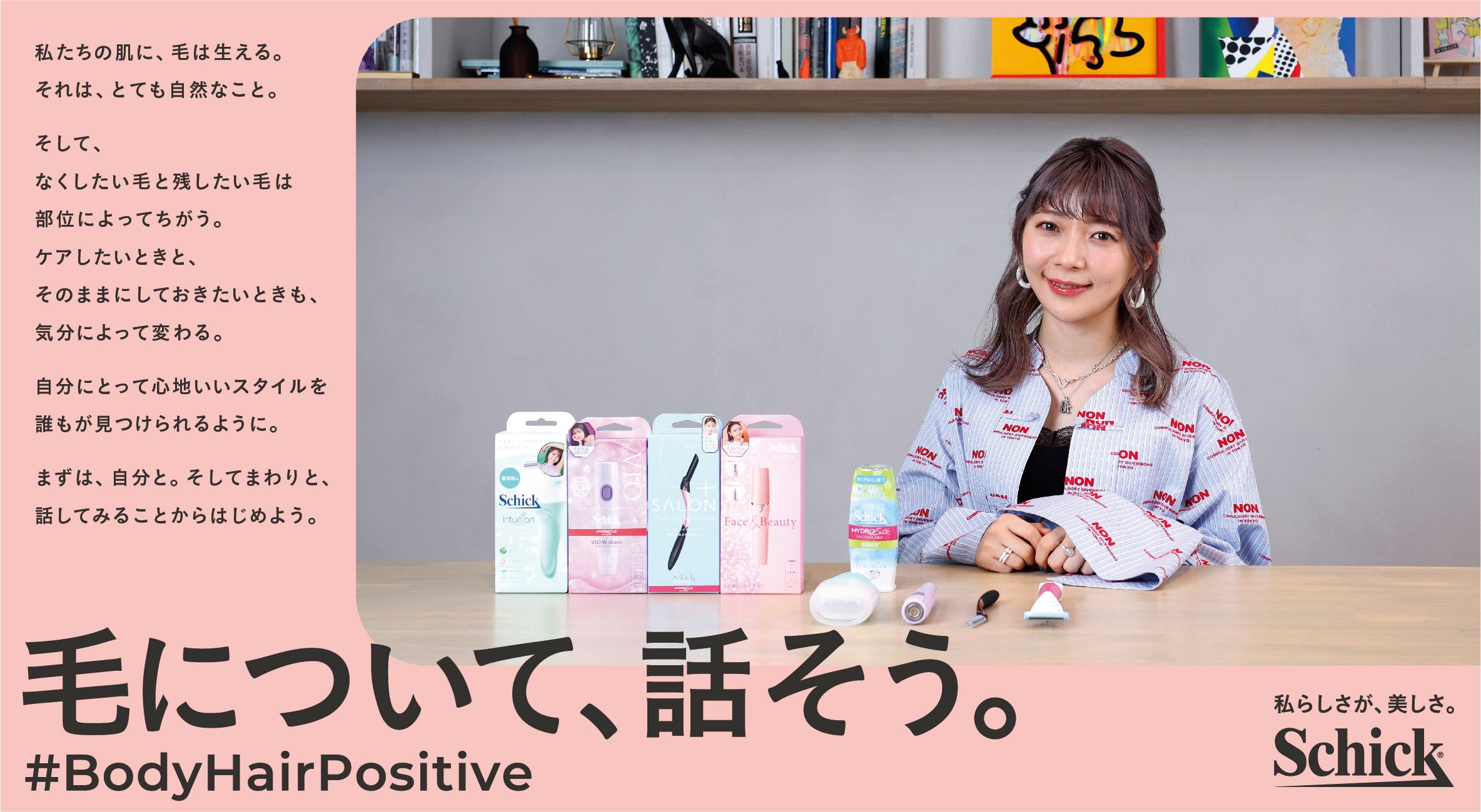 「#BodyHairPositive」とは、画一的なボディヘア(体毛)の美しさではなく、「どんなボディヘアも自分が気に入っていれば美しい」と、自身のボディヘアについてポジティブに捉えられるような社会を目指し2021年に開始したプロジェクトです。カミソリブランドとして長年、お客様のボディヘアのケアをサポートしてきたシックの「ボディヘアを通して“自分らしさ”や“美の多様性”について考えるきっかけになれば」という想いから始まりました。