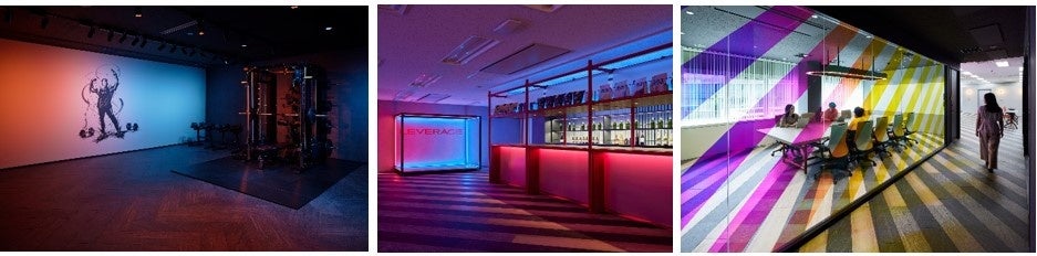 前例のない取り組みを行うには、「冷静と情熱」の両方が必要です。フロア内は、この2つを象徴する青と赤のRGBライティングで表しています。