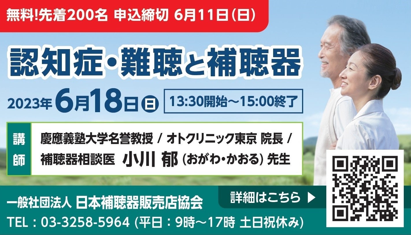 一般社団法人日本補聴器販売店協会(所在地:東京都千代田区 理事長:青戸義彦)は、「6月6日は補聴器の日」を記念して、市民公開講座「認知症・難聴と補聴器」を6月18日(日) 新潟日報ホールにて開催します。