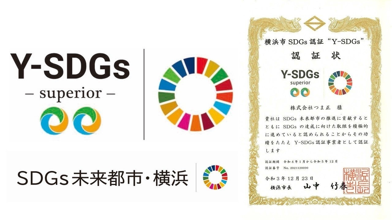 株式会社つま正は横浜市SDGs認証制度Y-SDGs 上位 Superiorに認証されました。体に優しく、環境に優しく、