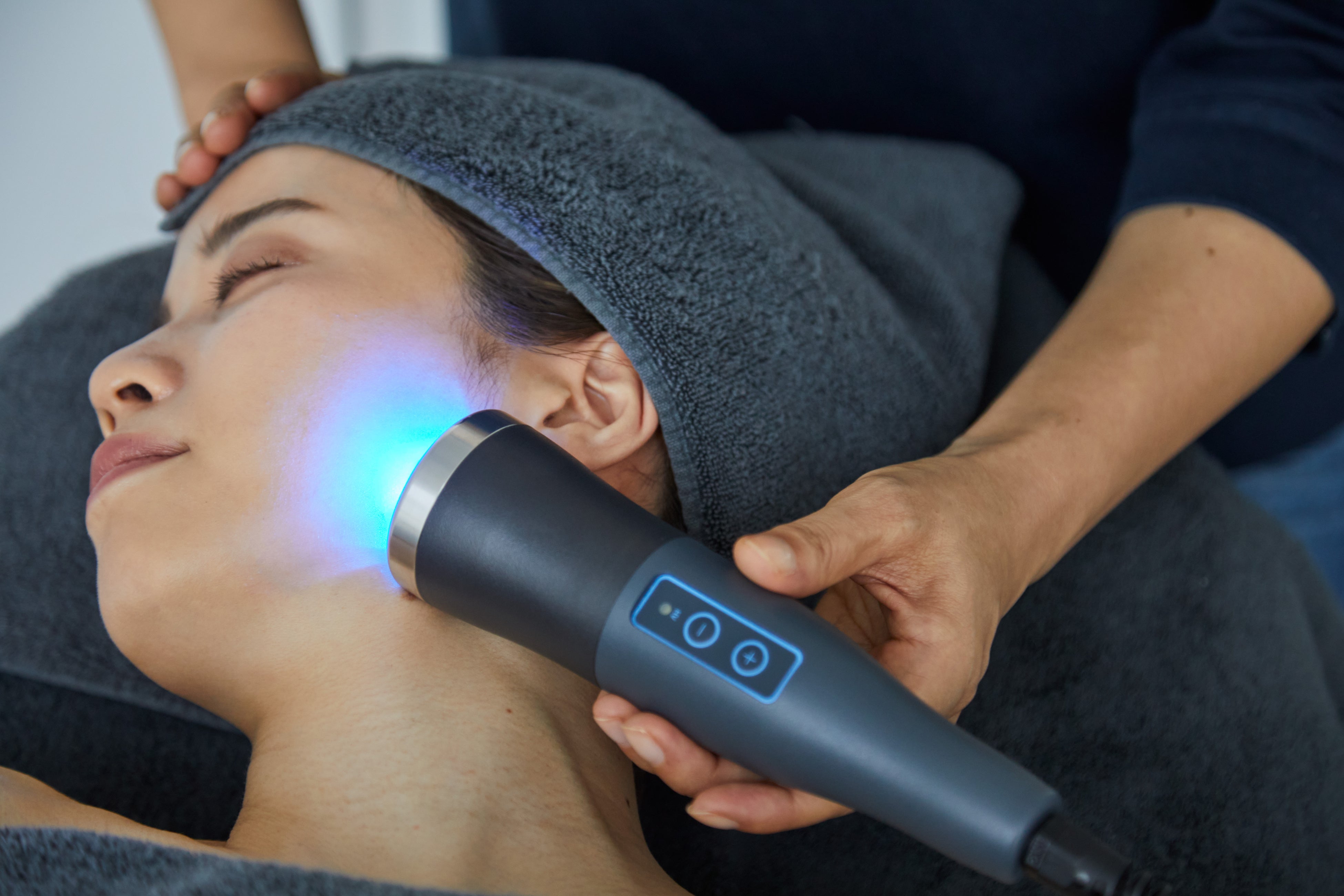 メディチャーライトヘッドスパは髪への栄養や自律神経を整えるのに大切な後頭部と首・肩周りをメインにメディチャーライトの近赤外線ライトとハイボルテージを組み合わせ照射し、身体をなかから温めます。肉に刺激を与え、肩こりと首こりにアプローチすることで身体が温まり、筋肉を緩ませてからハンドトリートメントを行うことですっきりと凝りをほぐします。