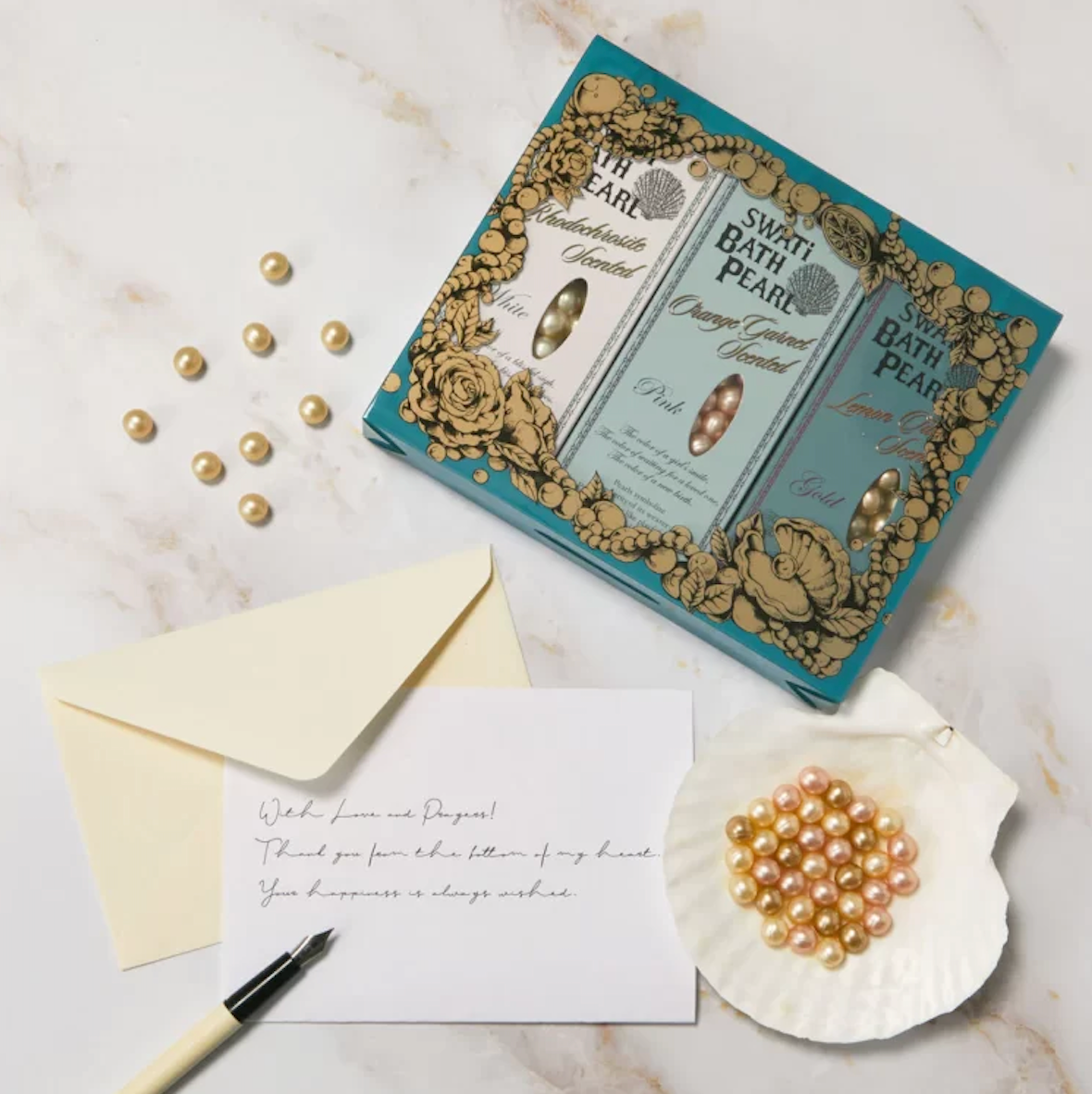 パールをモチーフにしたSWATi オリジナルの入浴料「バスパール」は、ローズをベースとした「インカローズの香り」、アプリコットをベースとした「オレンジガーネットの香り」、シトラスをベースとした「レモンクォーツの香り」の3つの香り。湯船の中で徐々に溶け出し、ラグジュアリーな香りがバスルームいっぱいに広がります。またお湯が乳白色に変化し、しっとりなめらかなお肌に!パールが浮かぶバスタイム。あなただけの特別なひとときをお楽しみください。
