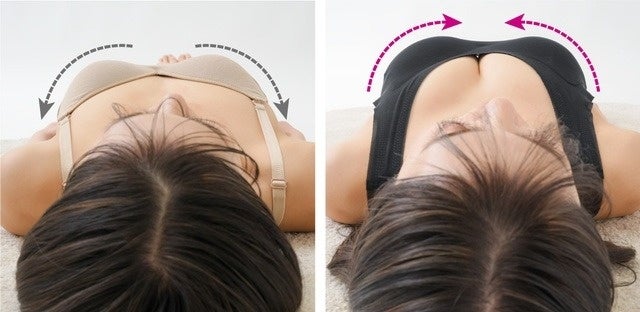 寝ている間や日常の動作で流れがちなバストも、一体型パッドでズレにくく、バストの広がりを抑えてくれます。