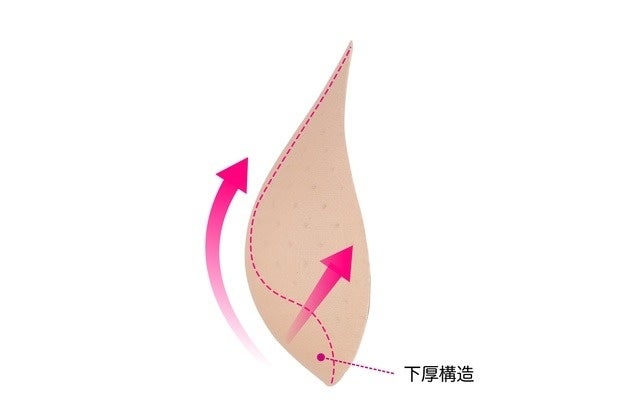②下厚構造で、バストをグイっと寄せ上げキープ!
