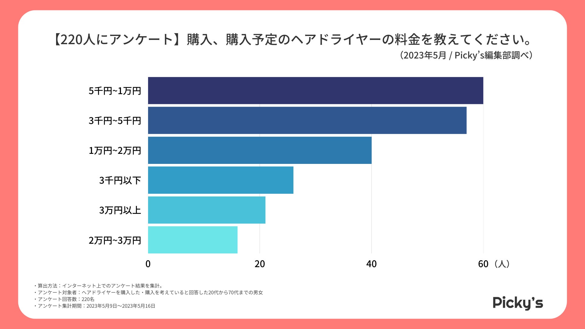 3千円~1万円のヘアドライヤーを購入、購入予定の方が約半数ということがわかりました。