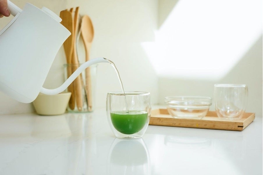 そこに着目し“緑茶の栄養をまるごと”摂る方法について数年にわたる研究をつづけた結果、粉末にした茶葉に特殊な技法を施すことにより、美味しさと栄養を損なわないまま「お湯や水ですぐ溶ける顆粒タイプ化」に成功しました。