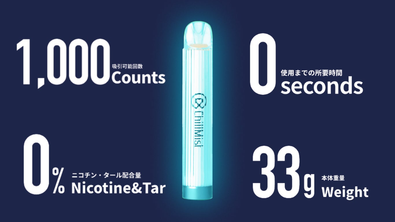 モバイルシーシャ【ChillMist】にはニコチン・タールは一切含まれていません。