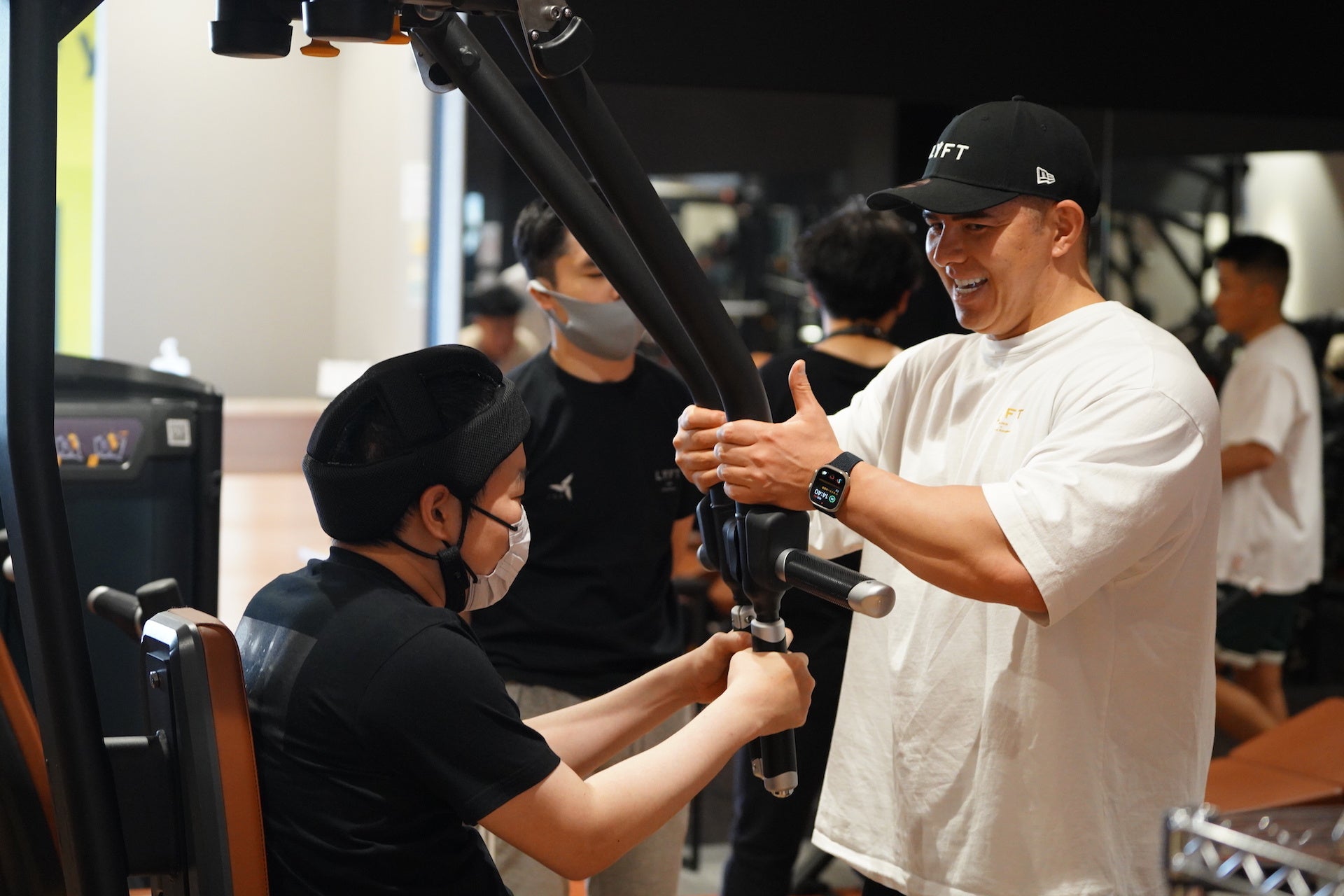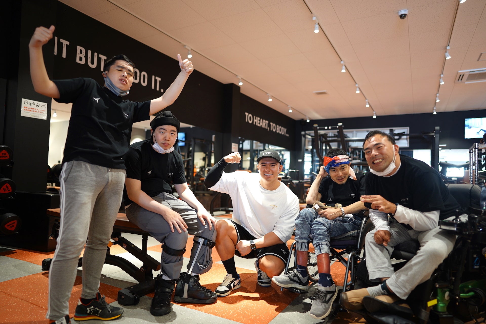 “せっかくトレーニングをするならば、汗をかく程おもいっきり楽しんでもらいたい”と自身がCEOを務めるフィットネスブランド「LÝFT(リフト)」のトレーニングウェアを利用者の方々にプレゼントし、実際にトレーニングウェアを纏いトレーニングを行いました。
