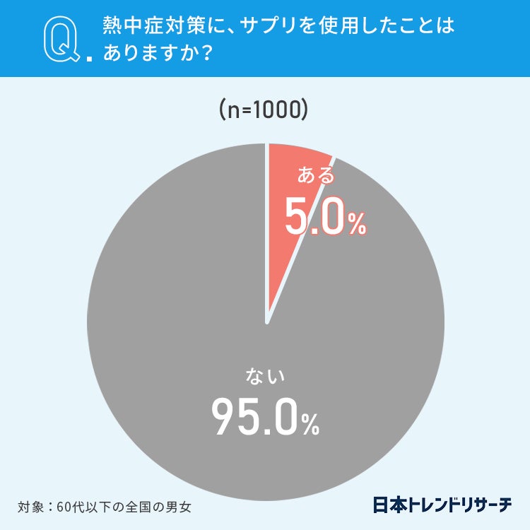 5%の方が、熱中症対策にサプリを使用したことが「ある」と答えています。