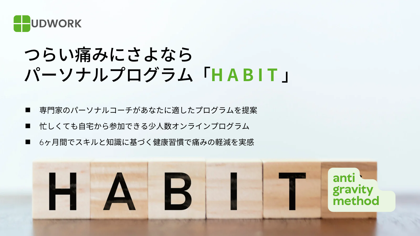 今こそ、長年の体の痛みから解放され、健康で充実した人生を手に入れるチャンスです。HABITプログラムに参加して、新たな一歩を踏み出しましょう。