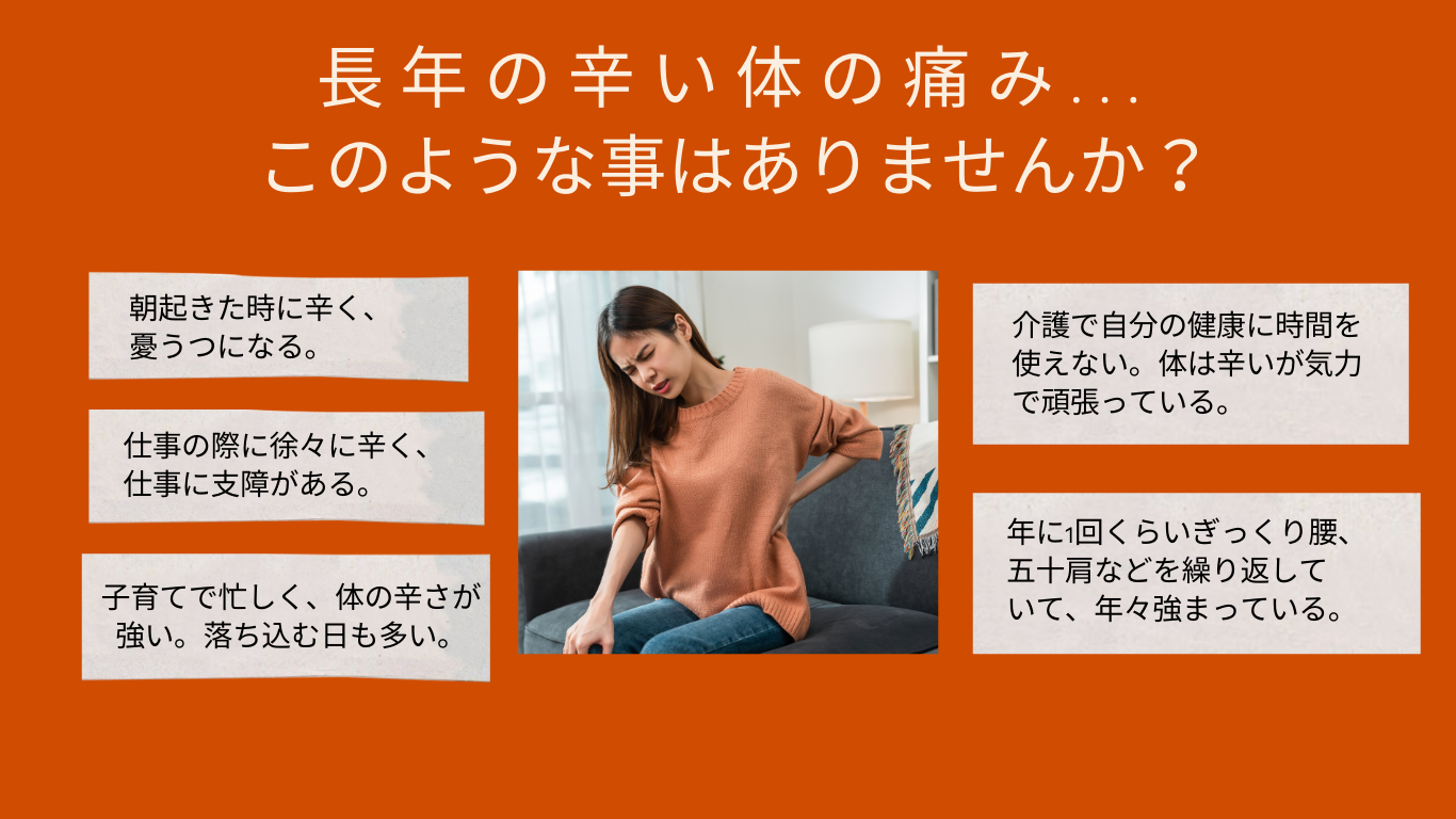 体の悪いクセが長期化することで痛みは、繰り返し、悪化をします。