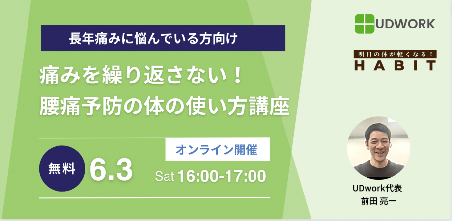6/3(土) 16時より オンラインイベント開催!「腰痛予防の体の使い方講座」