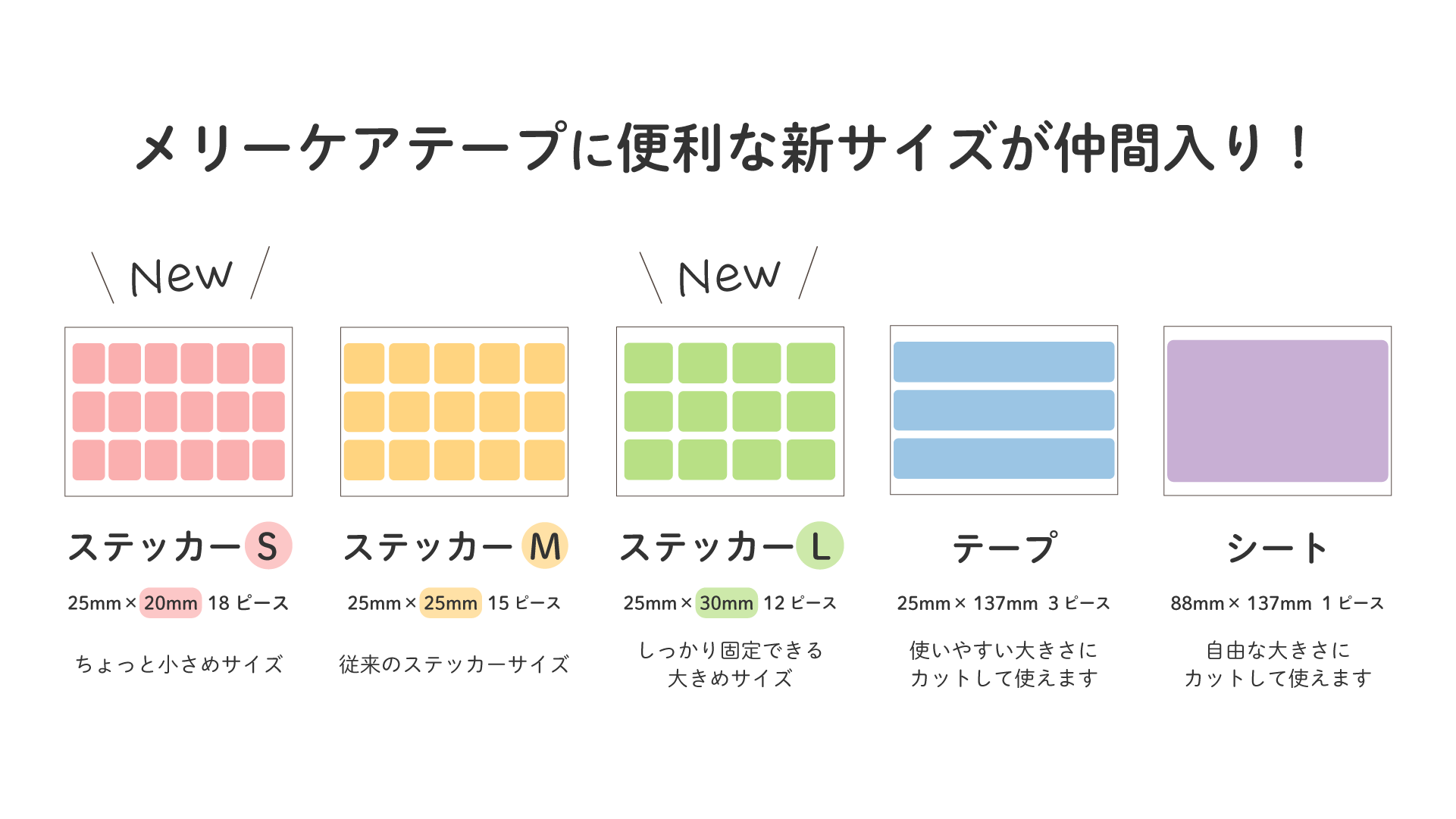 メリーケアテープ「まっしろ」全5サイズ 各400円(税込)