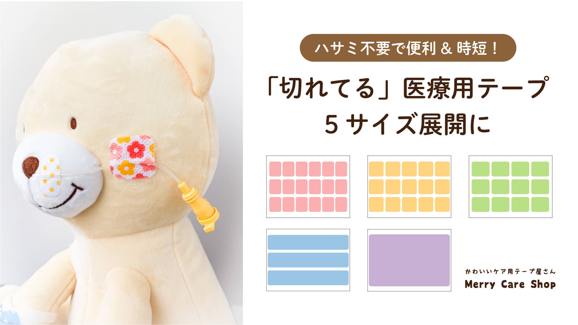 「メリーケアテープ」は、かわいいイラストデザインをプリントし、使いやすい大きさに型抜き加工をした医療用テープ。