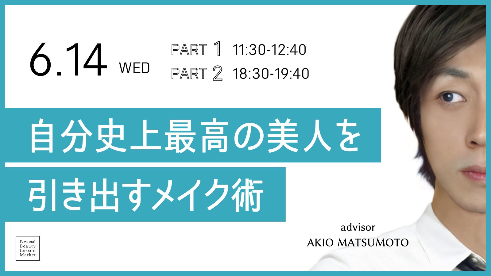 本イベントでは、メイクアップアーティストで本サービス講師の松本あきお氏が、自分史上最高の「美人」になれるメイクをご紹介します。「美人」になるためのメイク方法は人それぞれ異なり、まずはお顔のパーツの大きさ、角度、ほかのパーツとの距離感など自分自身のお顔を知ることが重要です。多くの芸能人のヘアメイクを担当してきた松本氏だからこそレクチャーできる、一人ひとりの「美人」を引き出すメイクテクニックを、2回のライブ配信に分けて紹介します。