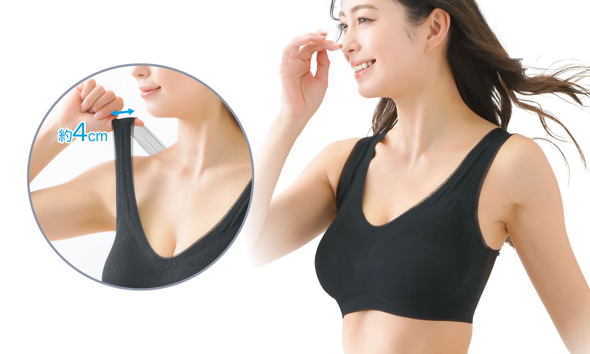 ノンワイヤータイプで着用時に窮屈な締め付けが少なく、圧迫感から解放します。