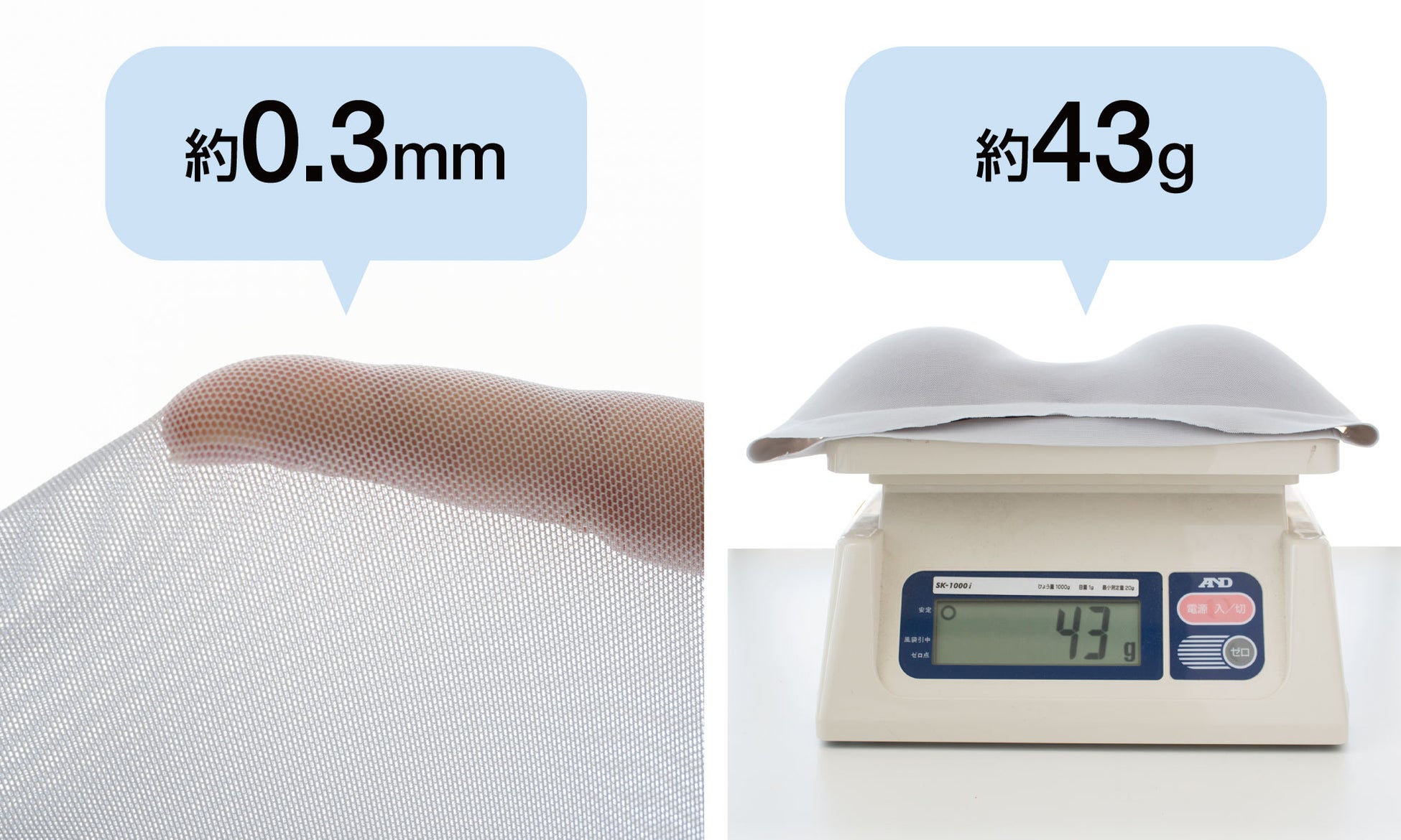 メッシュ生地はわずか約0.3mmほどで素肌と一体化するような驚きの薄さ!まるで着けていないかのような軽い着用感です。