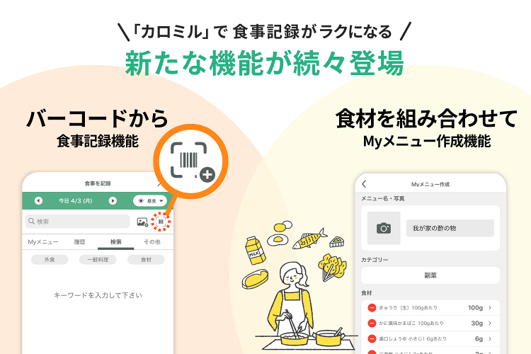 そこで、市販商品のバーコードを読み取るだけで簡単に記録ができる新機能の搭載を行い、3月にiOSで先行し