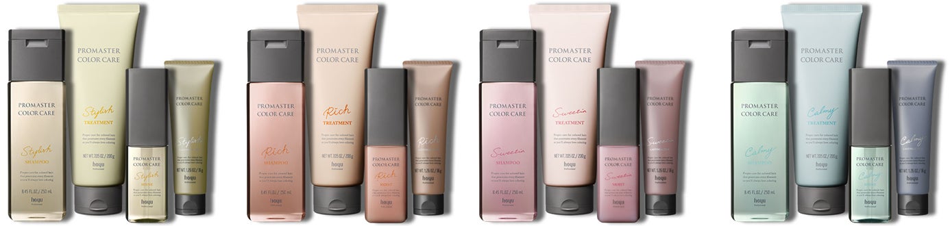サロン専売ヘアケアブランド「PROMASTER COLOR CARE(プロマスターカラーケア)」は、2020年2月に誕生。ヘアカラーによって起こるダメージの補修に特化しており、それぞれの髪質変化に寄り添った4つのラインを展開。ヘアカラーによるお悩みに応じたケアで、美しい髪へと導くシリーズです。