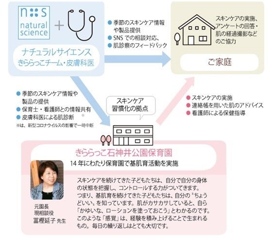 コロナ禍では、以前のような皮膚科専門医による肌診察などが行えない中で、SNSを活用して保育園とご家庭との連携を強化し、活動を続けてきました。14年目となる本年も、引き続き乳幼児期の成長中の肌に対するスキンケアの効果について調査し、忙しい保育士さんや共働きのご家庭でも続けやすいスキンケアの方法について啓発をしていきます。