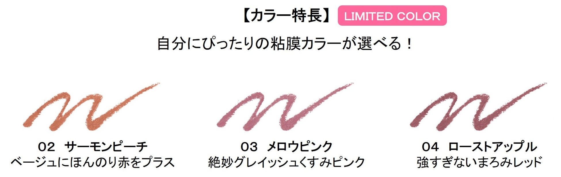 濃すぎず柔らかな発色で目もとを際立たせるふわ締めライナーから、粘膜カラー3色が数量限定で登場!