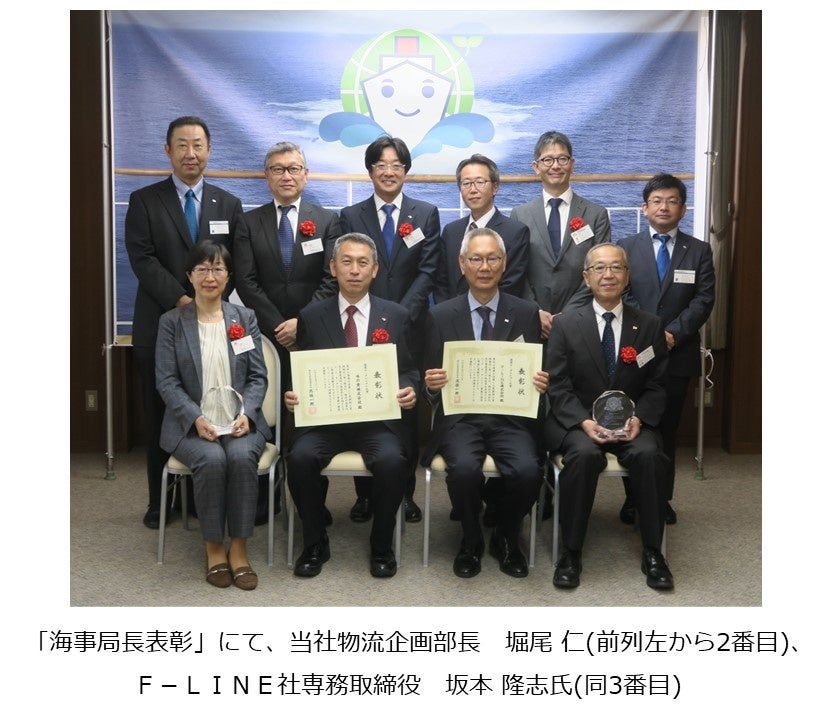 令和4年度は、エコシップマーク認定事業者に27社が選出され、その中でも特に革新的で、最も環境負荷低減の貢献度が高い企業として、当社とF-LINE社が「海運モーダルシフト大賞」を受賞しました。