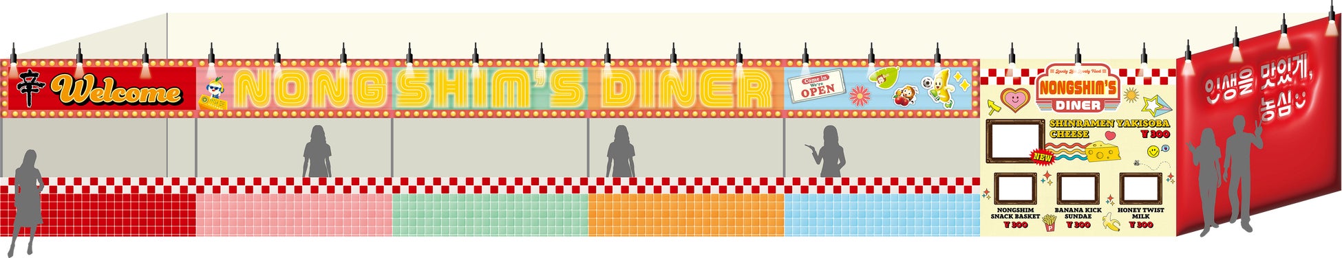 韓国発のバズフード、辛ラーメンがフードエリアをプロデュースし、ぷっくりしたデザインの「パデッドアイテム」のような壁のフォトスポットなど、韓国らしい空間でトレンドフードを楽しめます。さらに、新商品「辛ラーメン焼きそば チーズ カップ」を先行販売し、世界最速で体験することができます。その他にも韓国で人気のスナックをアレンジしたオリジナルメニューを多数用意いたします。